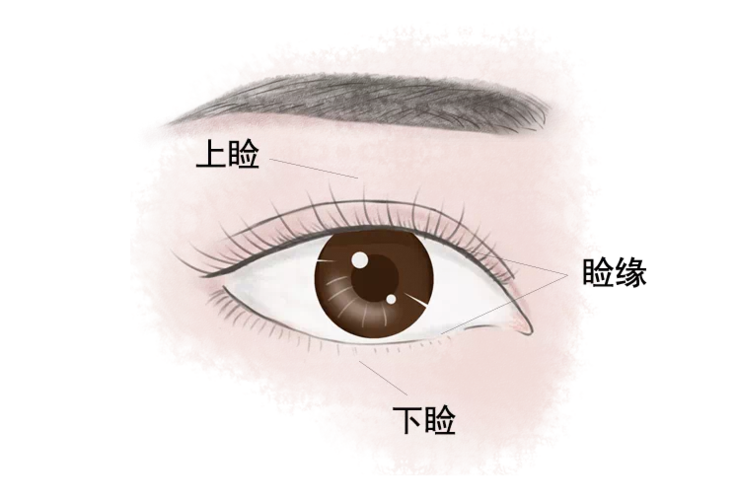 重點觀察瞼緣表面是否光滑、有無充血、是否附著鱗屑。睫毛是否缺損、其位置與排列方向是否正常、有無睫毛亂生或倒睫、或有雙行睫毛等先天異常。要特別看看瞼板腺的口子有沒有油脂顆粒,有沒有堵塞或者紅腫。健康的眼瞼緣應為無充血,粉紅色,瞼板腺通透無堵塞,如果瞼板腺堵塞,油脂分泌不出來,就容易造成干眼睛癥。