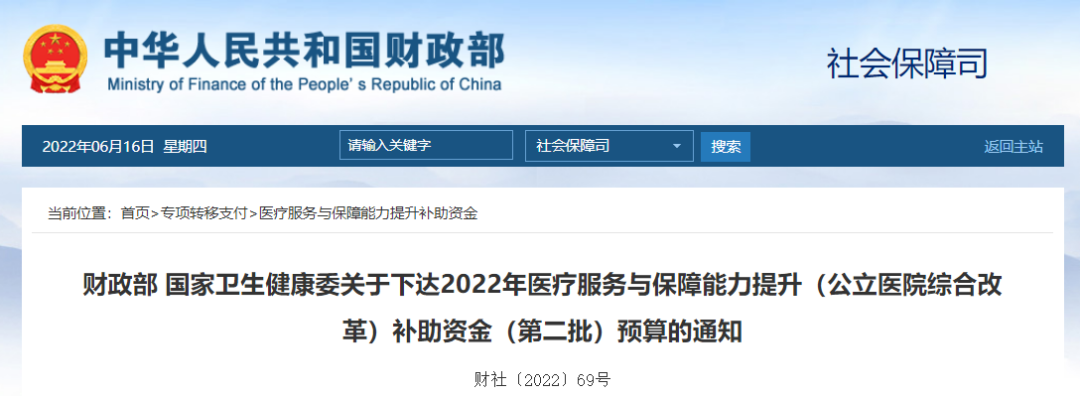 110億資金下發國產設備呈利好趨勢6月14日,國家財政部社會保障司發布了《財政部 國家衛生健康委關于下達2022年醫療服務與保障能力提升(公立醫院綜合改革)補助資金(第二批)預算的通知》(以下簡稱通知)。據資金分配表了解,第二批財政補助資金共計30億,將定向投向山西太原…